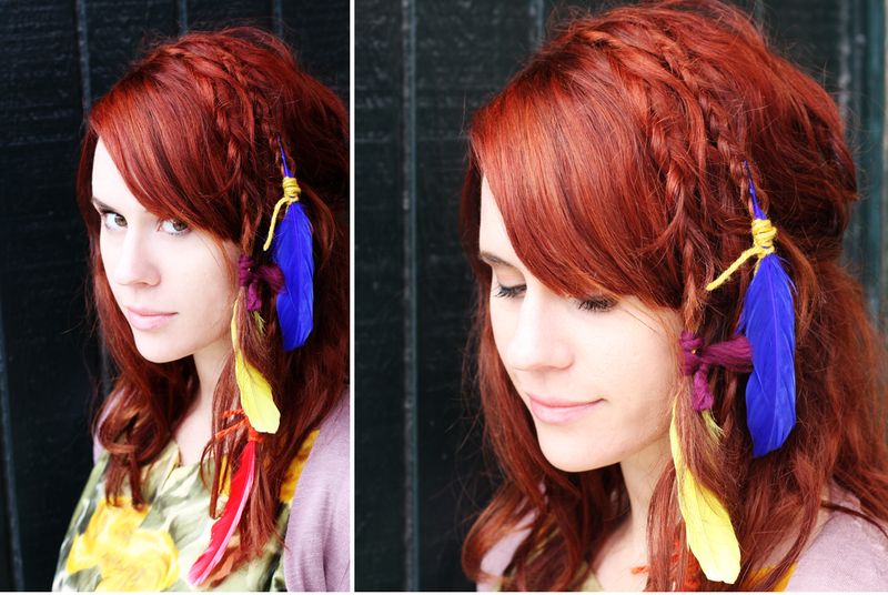 Super Red Punk Mohawk With Long Black Braids Native American